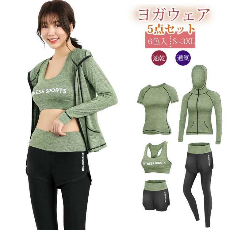 ヨガウェア レディース 5点セット 上下セット スポーツウェア フ