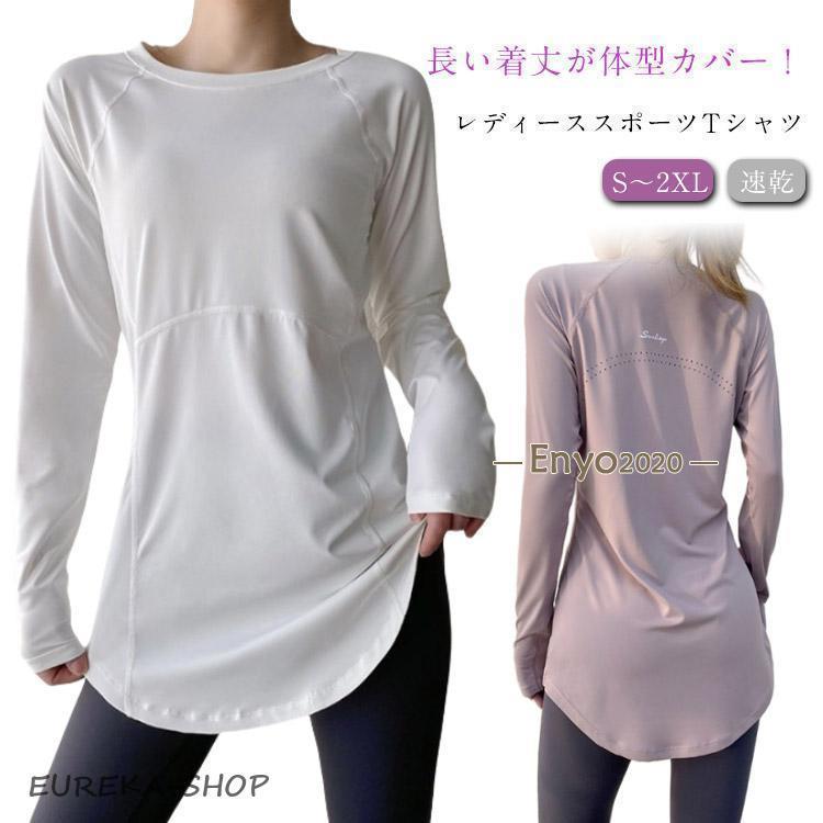 スポーツウェア レディース ヨガウェア 長袖 トップス Tシャツ ロング丈 丈長 ヨガトップス 無地 ゆったり 速乾 吸汗 通気性 ピラティスウェア トレーニングウェア