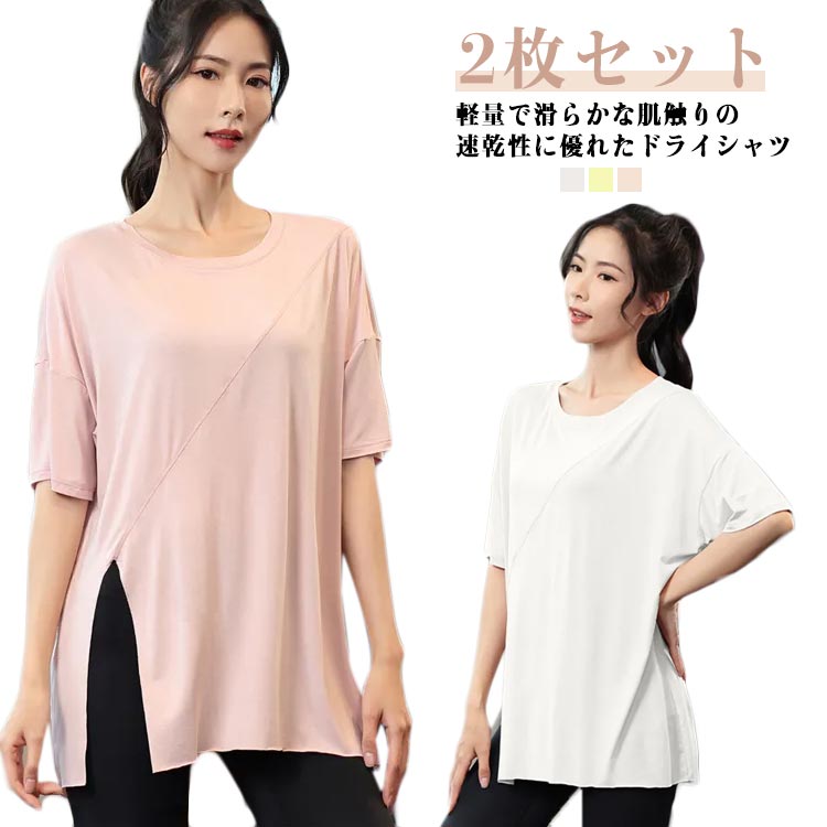 2枚セット ヨガウェア トップス 半袖 ヨガtシャツ レディース ヨガトップス ピラティス ウェア ・・・