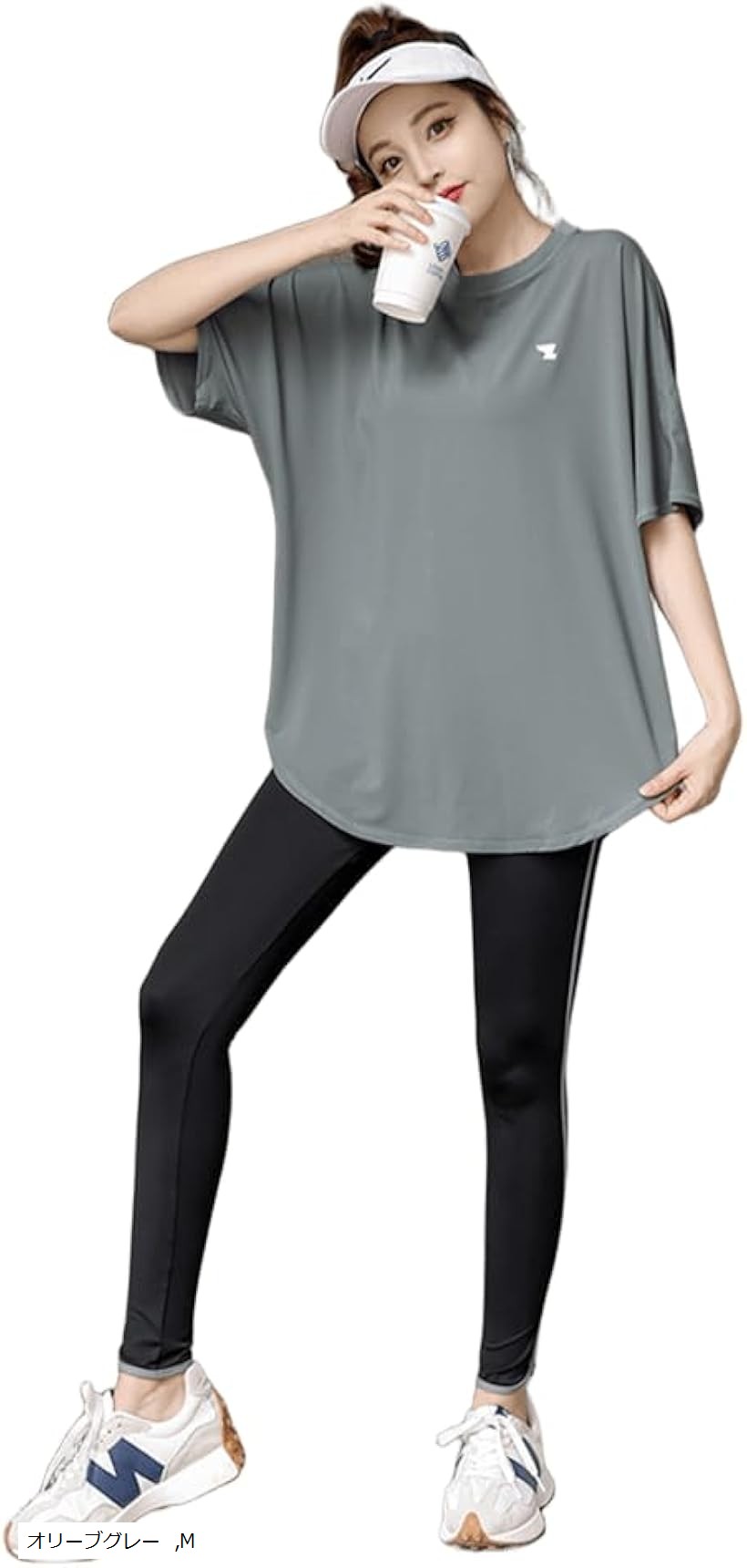 体型カバーに嬉しいロング丈&ゆったりオーバーサイズの半袖ヨガトップス。速乾・伸縮性に優れ、薄手で動きやすくおしゃれなフィットネスウェアです。
