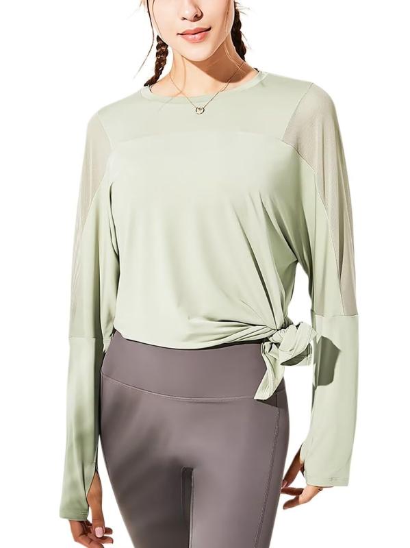 動きやすさ抜群の伸縮性と速乾性を備えた薄手ロング丈トップス ヨガやピラティスに最適なゆったりシルエットで体型カバーも叶える