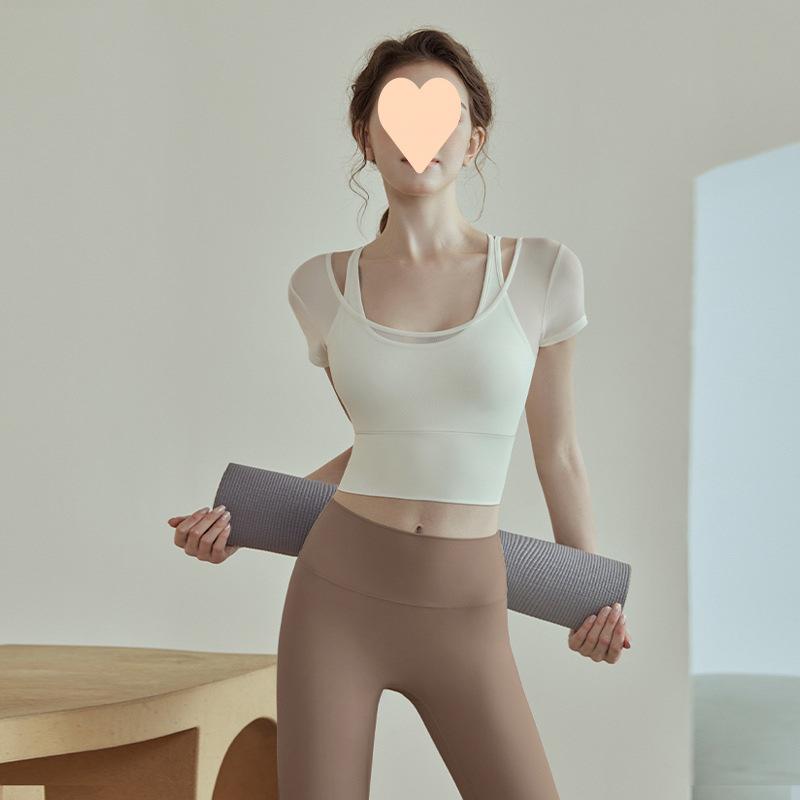 ヨガウェア レディース 女性用 カップ付き 半袖 トップス Tシャツ 速乾 ドライ 通気性 伸縮性 ・・・