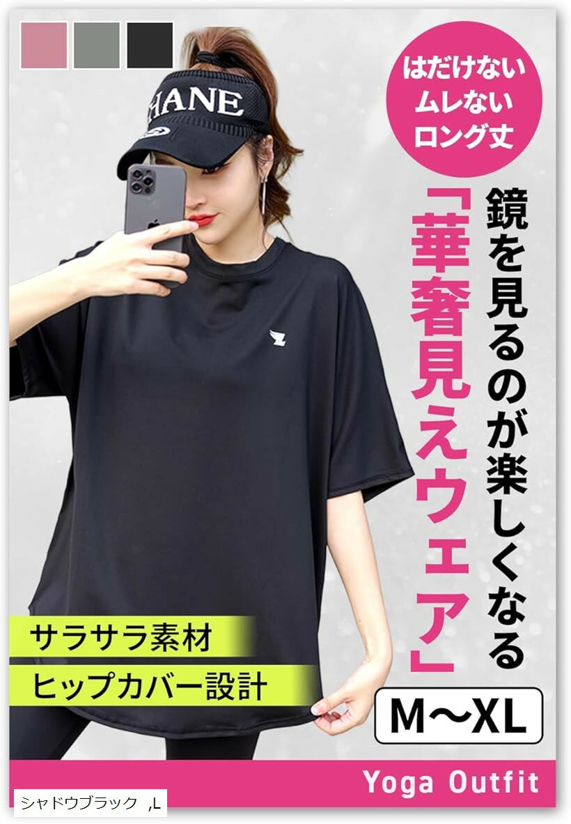 ヨガウェア トップス 速乾 薄手 半袖 ヨガtシャツ ピラティス ウェア ロング丈 おしゃれ 体型カバー ゆったり ジムウェア