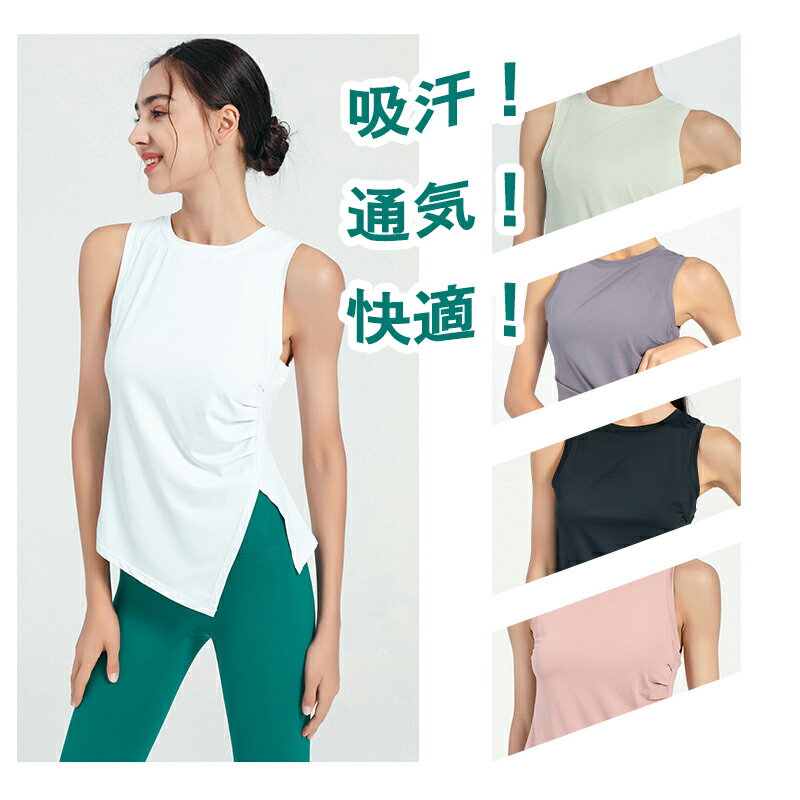ヨガウェア トップス タンクトップ トレーニングウェア 半袖 スポーツウェア ゆったり ホットヨガ ・・・