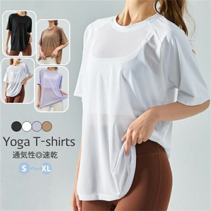 送料無料 ヨガウェア トップス トレーニングウェア 半袖 メッシュ スポーツウェア ゆったり ホット・・・