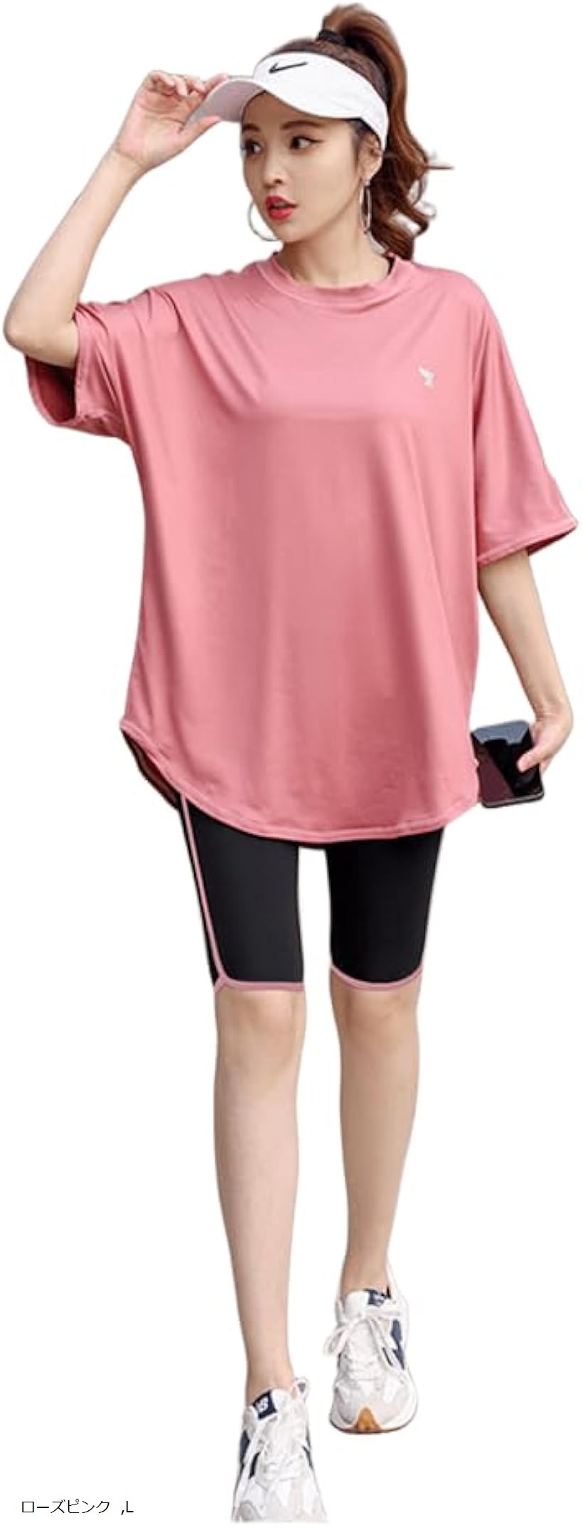半袖tシャツ レディース 体型カバー Tシャツ カジュアル 5分袖 ストレッチ トップス ヨガウェア トップス 半袖 ヨガtシャツ