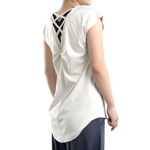 ヨガウェア ジムウェア トップス ロング丈 半袖 杢 接触冷感 吸水速乾 クール ドライ バックオー・・・