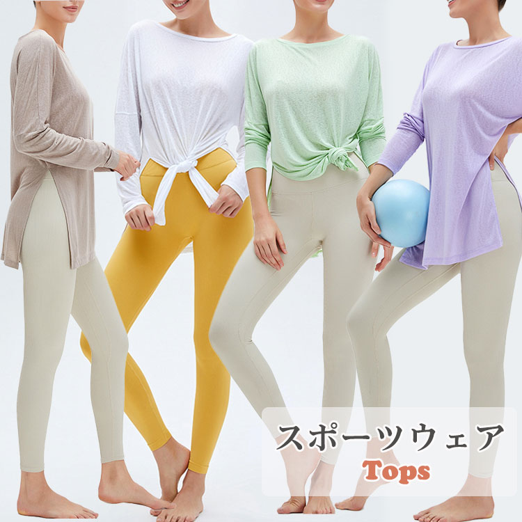 ヨガウェア トップス 長め 体型カバー ジム 安い 運動 ロング丈 ホットヨガ フィットネス 重ね着・・・