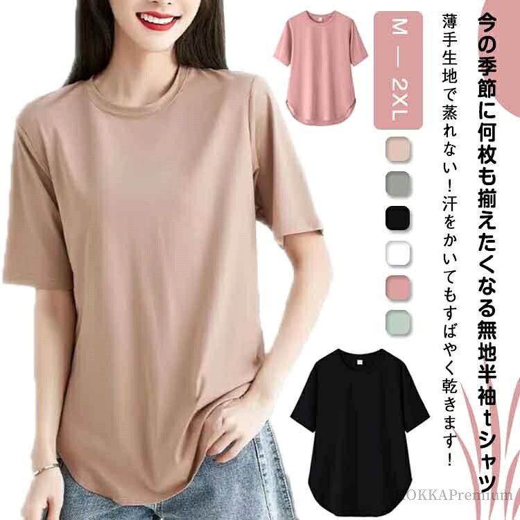 【送料無料】体型カバー 20代 ロング丈 吸水 夏 春 半袖tシャツ カジュアル トップス 無地 接・・・