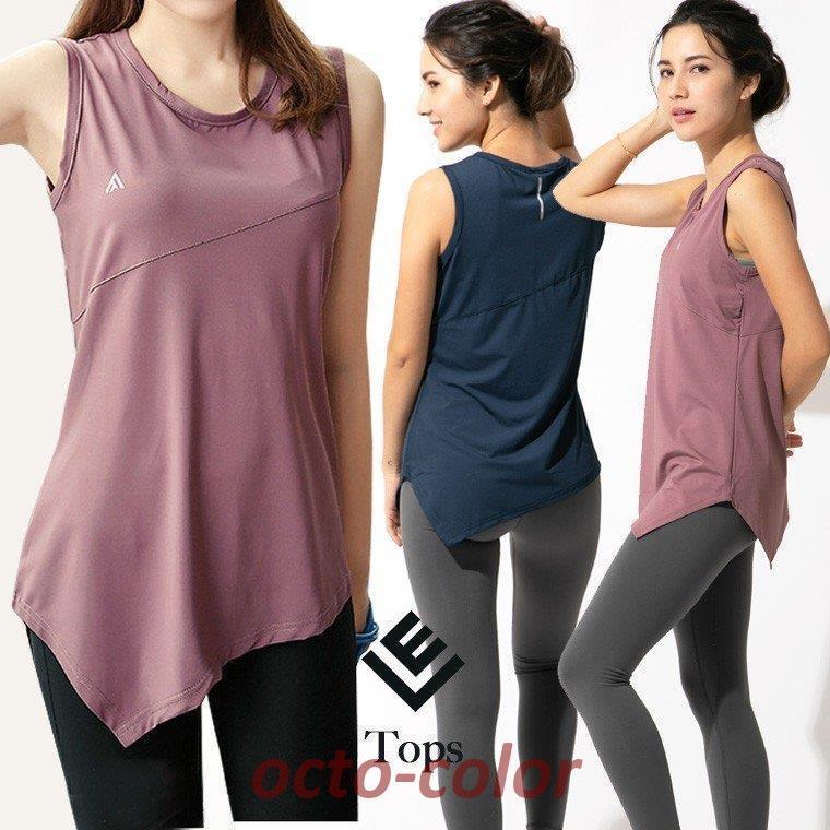 ヨガウェア トップス ロング丈 体型カバー タンクトップ お洒落 レイヤード スポーツウェア レディ・・・