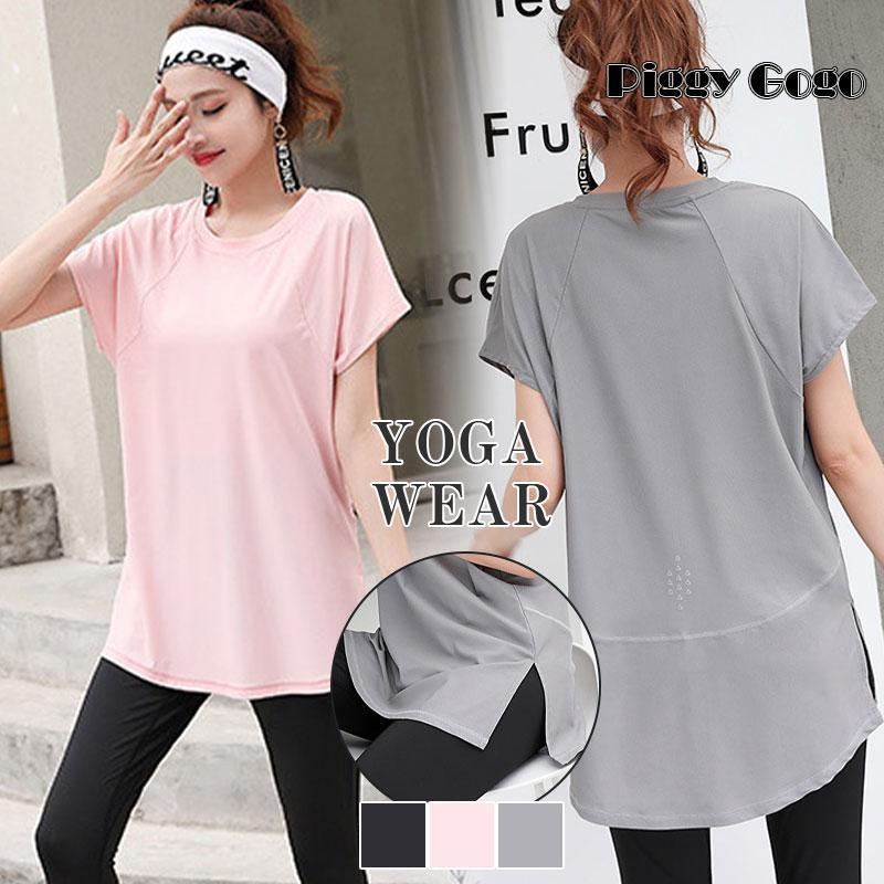 ヨガウェア トップス Tシャツ 半袖 スポーツウェア ロング丈 丈長 ヨガ ホットヨガ ジム 重ね着・・・