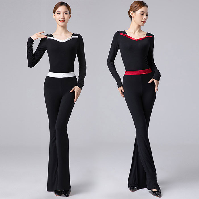 社交ダンス トップス パンツ レッスン着 セットアップ ブラック 黒 バレエレオタード風 長袖 トッ・・・