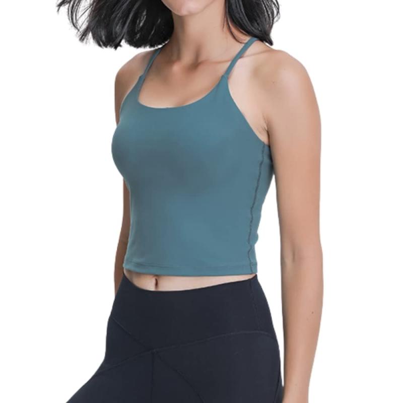 ヨガウェア トップス カップ付き ロング丈 ブラトップ フィットネス キャミソール スポーツブラ 揺れない ノンワイヤー おしゃれ