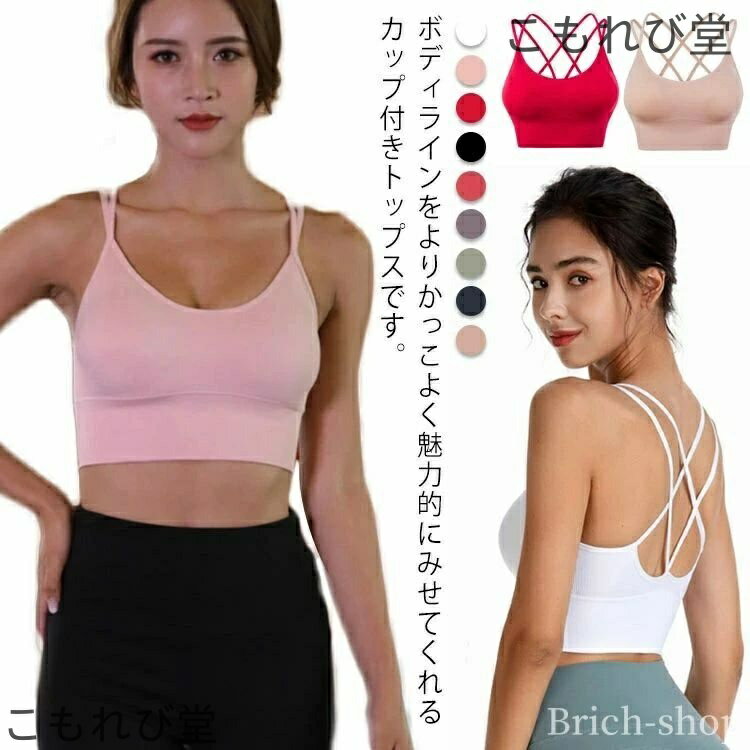 【送料無料】ヨガウェア トップス カップ付き ロング丈 ブラトップ フィットネス キャミソール スポ・・・