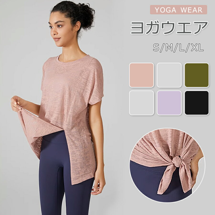 半袖 ヨガウェア スポーツウェア トップス レディース Tシャツ トレーニングウェア おしゃれ かわいい ヨガ 吸水速乾