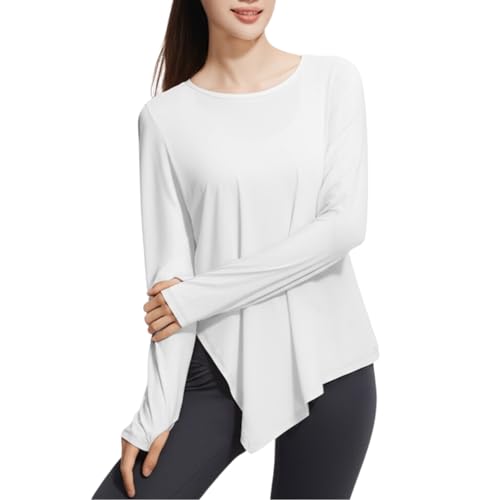 サイドスリット アシンメトリートップス ヨガウェア 長袖 ヨガ フィットネス スポーツウェア トレーニング 女性用 大きいサイズ 黒 白 無地
