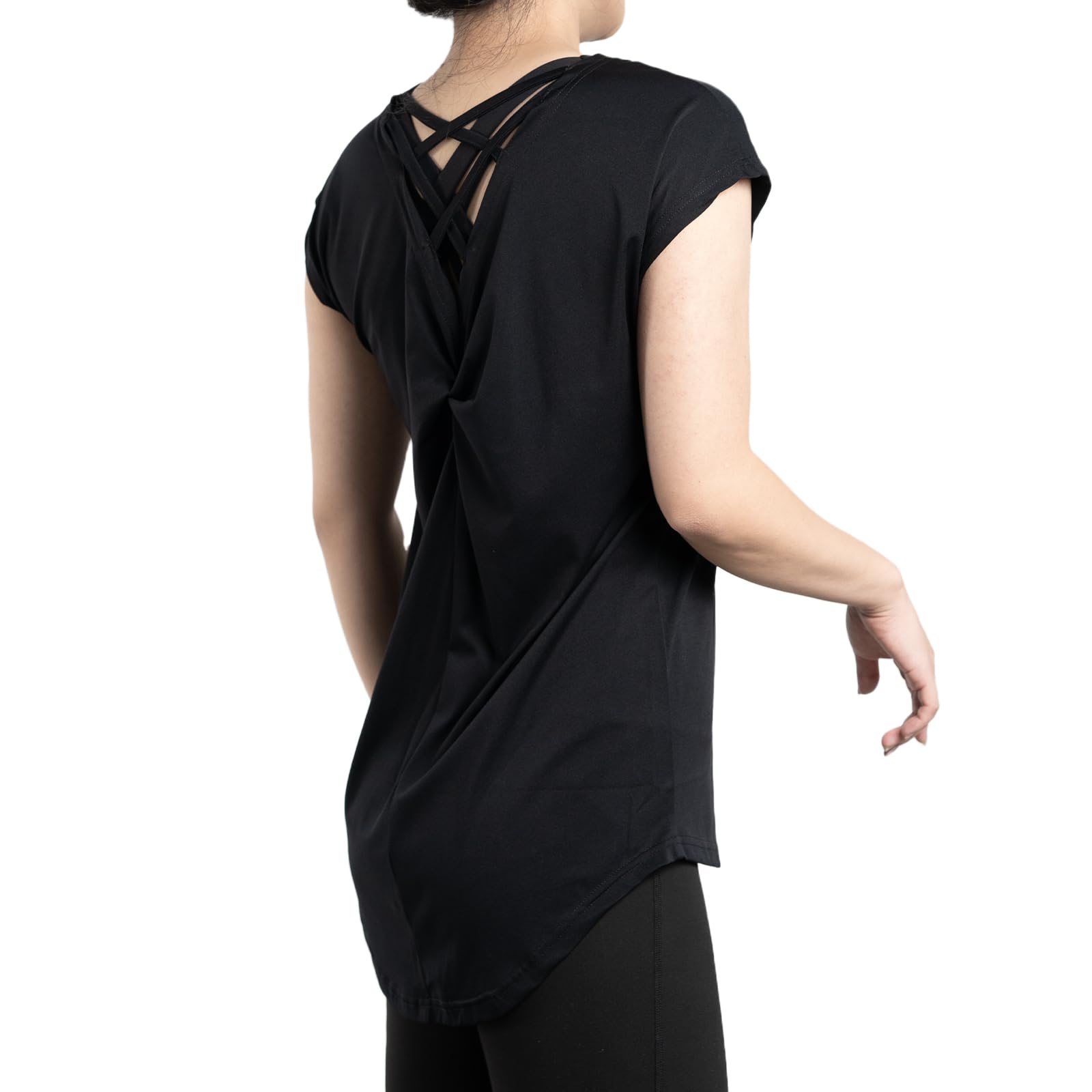 ヨガ スリア suria ヨガ ピラティス ウェア トップスカップ付き 半袖 かわいい レディース おしゃれ ストレッチ 無地 シンプル サスティナブル ロング丈 伸縮性 上品 ブランジング 多用途