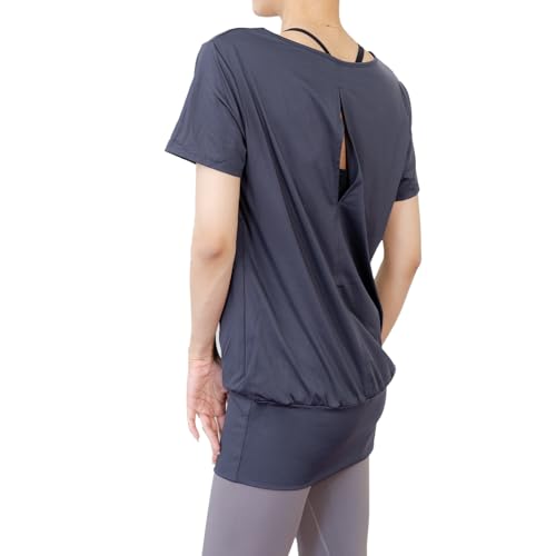ヨガウェア Tシャツ トップス 定番 半袖 レディースTシャツ tシャツ ロング丈 ランニングウェア 重ね着 バックデザイン ランニング ヨガ 通気性 ピラティス ホットヨガ エクササイズ