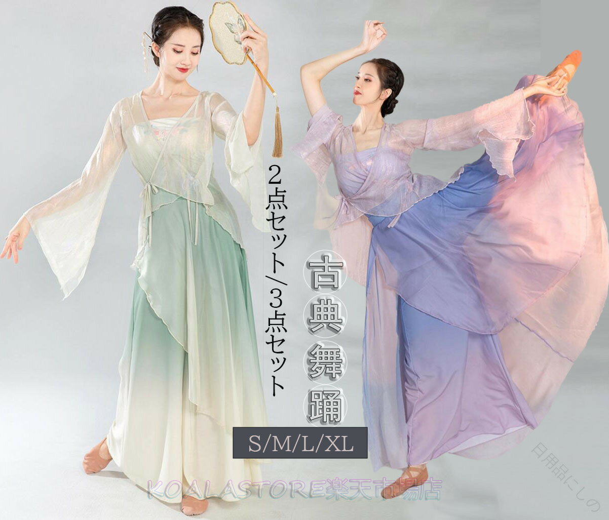 古典ダンス衣装 古典舞踊ウェア 羽織 ガチョウパンツ キャミソール 3点セットアップ グラデーション・・・