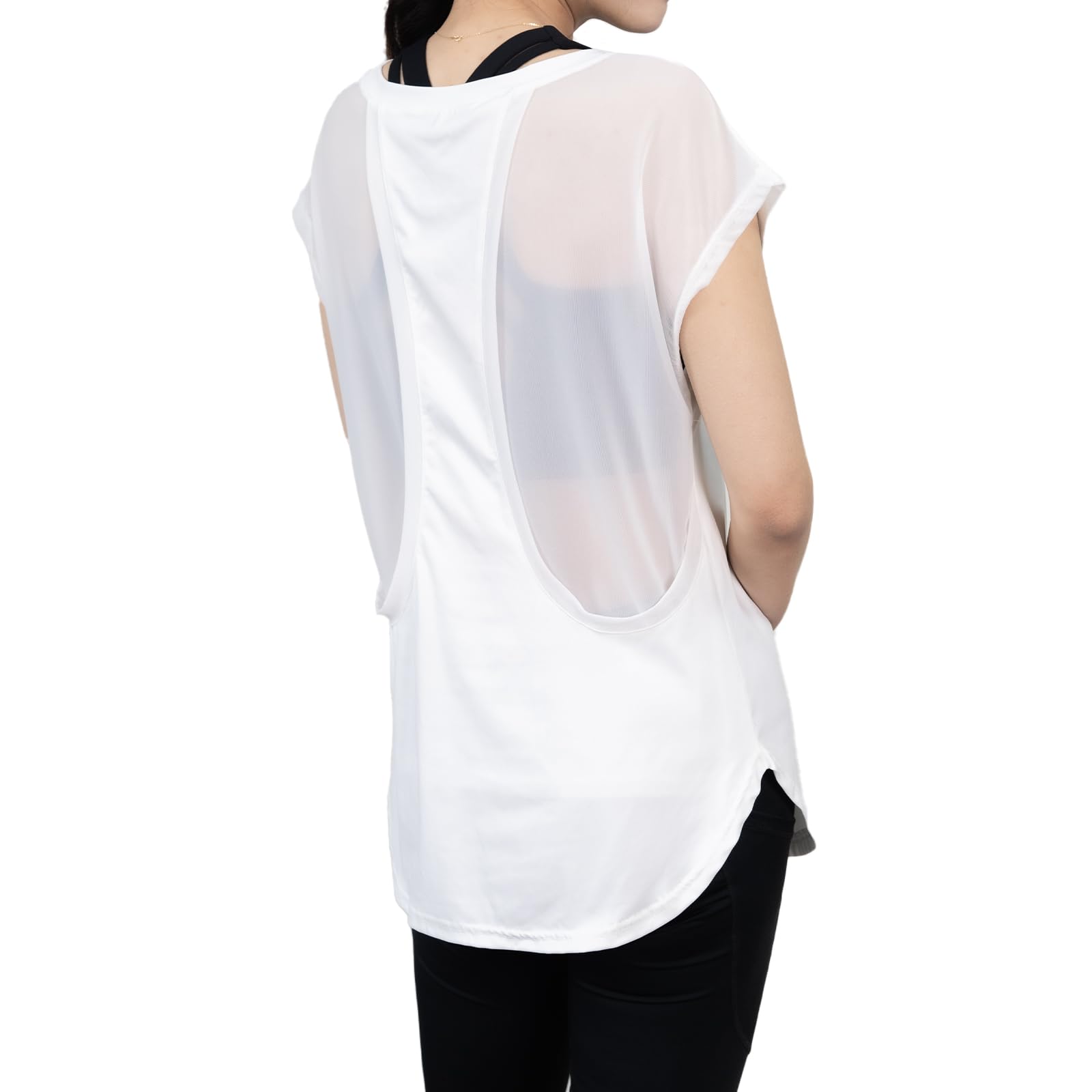 ヨガ ウェア 背中 あき トップス レディース ツルツル素材 軽い 着丈長め 丈が長い お尻周りカバー M L サイズ ホワイト ブラック ピンク サックス ベージュ グレー サックス ブルー
