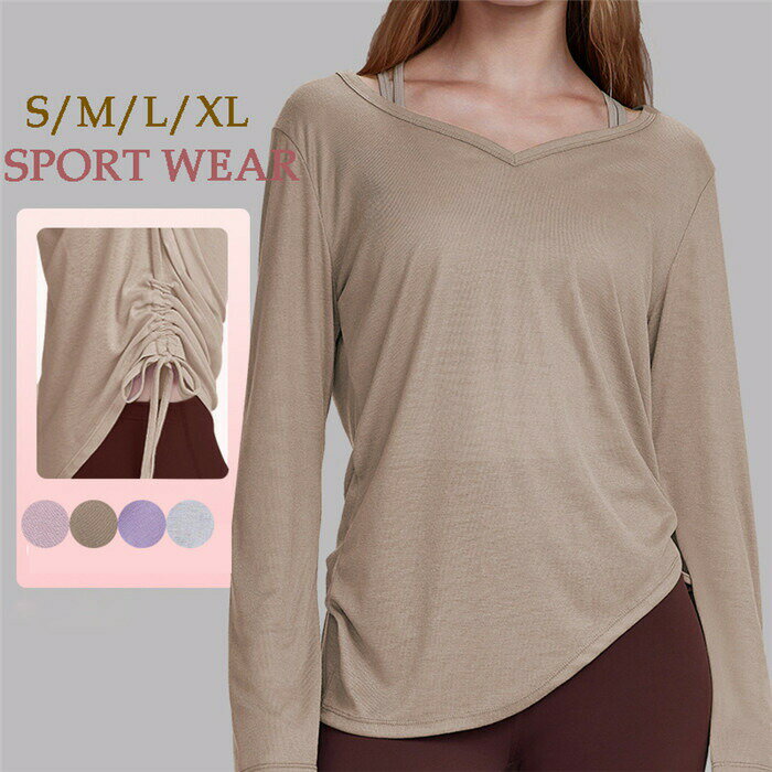 ヨガウェア レディース 長袖 ドロスト スポーツTシャツ 高級感 スタイルアップ 着痩せ 通気性 吸・・・
