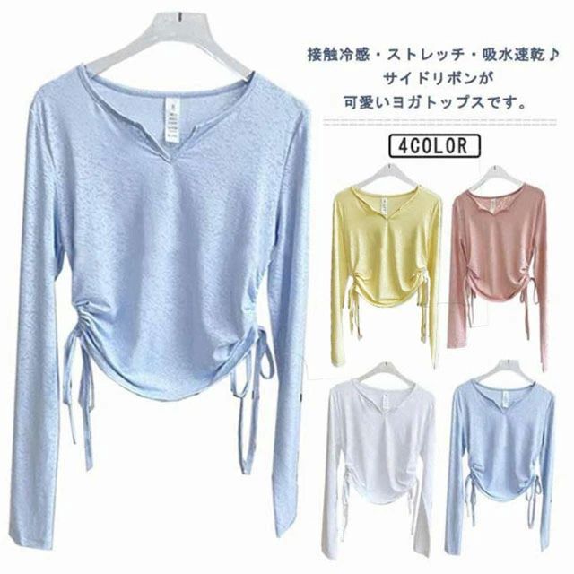 ヨガウェア レディース サイドリボン ヨガトップス 伸縮性 ショ