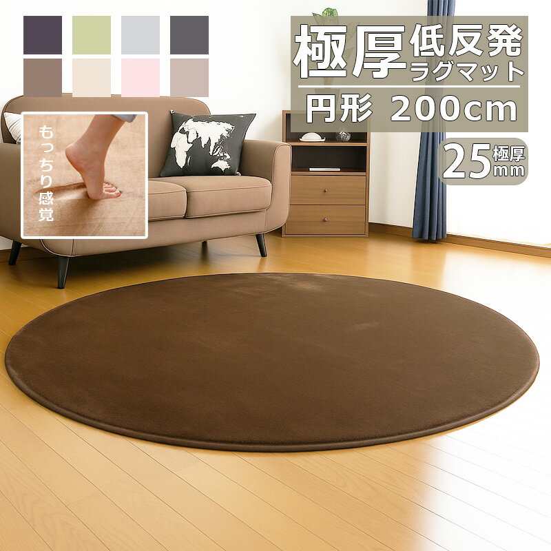 ラグ 低反発 極厚25mm 直径 200cm 厚手 滑り止め ラグマット カーペット ホットカーペット対応 円形ラグ リビング オールシーズン 北欧 モダン 防音マット 厚め 円形 1人暮らし 家族