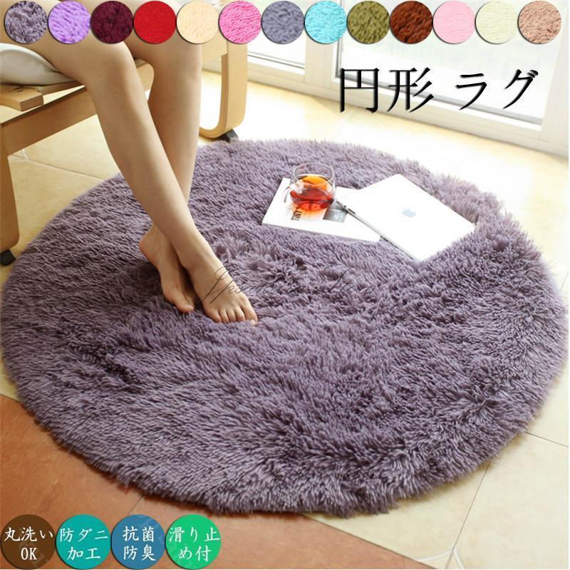 ラグ 洗える マイクロファイバー ラグ 滑り止め付き 円形ラグ リビングラグ 洗えるラグ 無地 絨毯