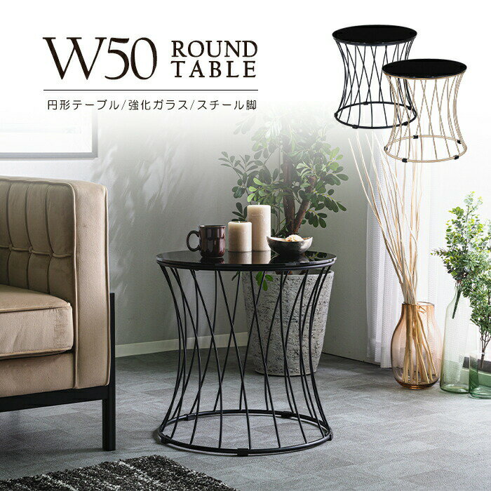 幅50cm 高さ50cm サイドテーブル 高め ソファサイドテーブル ガラステーブル ラウンドテーブ・・・