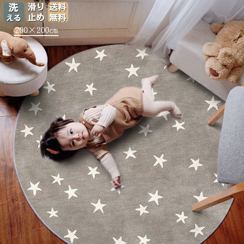 カーペット 掃除楽 サークル 直径200 ズレ防止 かわいい お手入れ簡単 韓国風 水洗いOK 年中使える 洋風 洋室 玄関 絨毯 新生活 オシャレ 四角 じゅうたん デザイン 小さめ 1.5畳 2畳