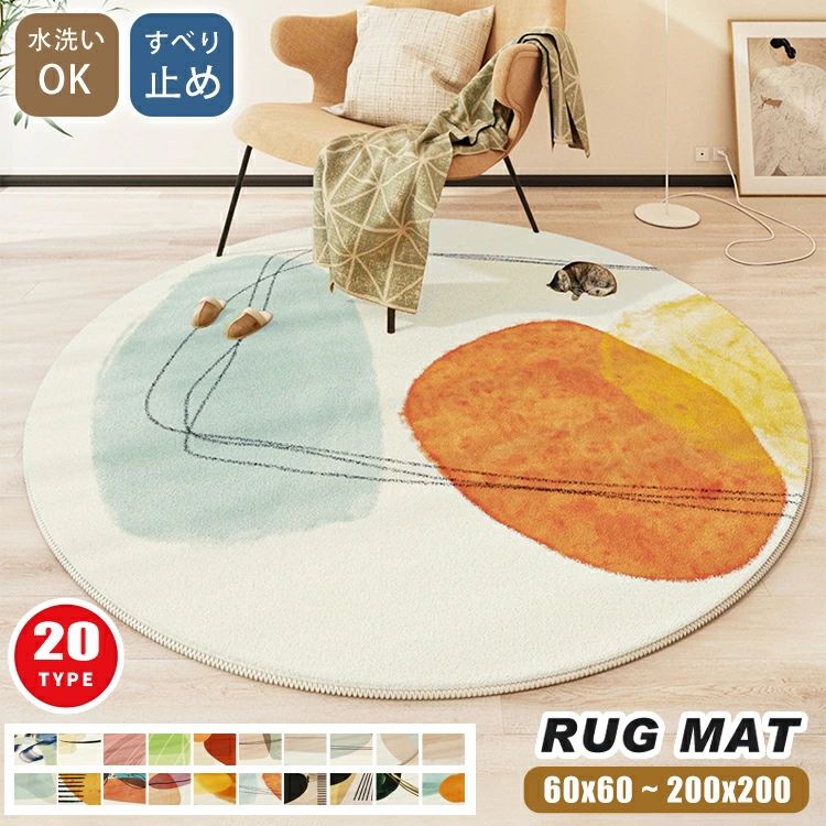 13カラー/9サイズ ラグ 円形 洗える ラグ 円形ラグ 直径200cm 丸型 ラグマット 滑り止め付 西海岸 絨毯 マット 北欧 カーペット リビング 春夏用 可愛い かわいい 撮影背景 脱衣所
