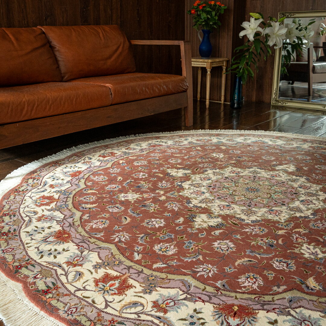 【本場イラン産】直径200cm ペルシャ絨毯 丸形(送料無料 手織り 天然染料 かわいい おしゃれ 絨毯 ラグ ウール100% ペルシャ)