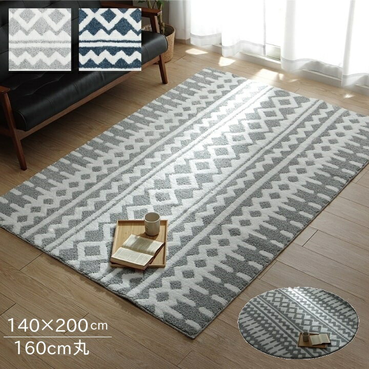 ラグ カーペット 北欧柄【マルク】長方形 円形 2サイズ展開 140×200cm/160cm丸 グレ・・・