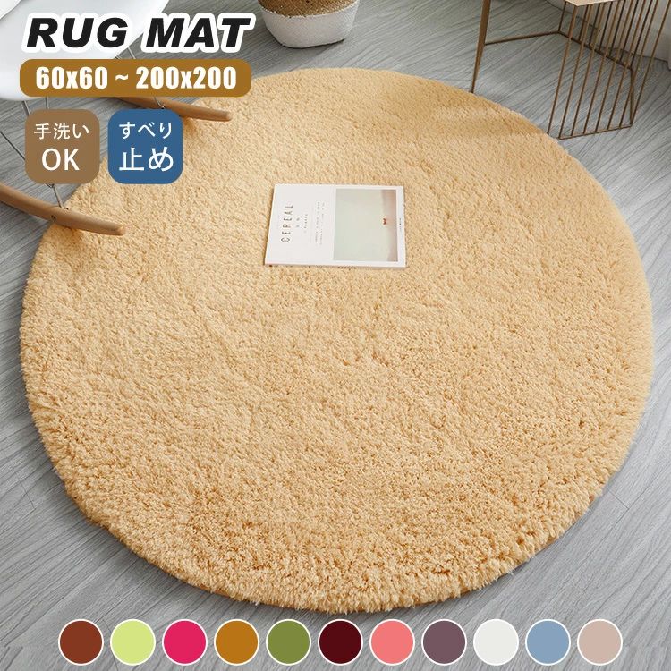 11カラー/7サイズ ラグマット 円形 洗える 円形ラグ 60cm 滑り止め付 西海岸 絨毯 マット 北欧 カーペット リビング オールシーズン 可愛い かわいい シンプル 撮影背景 脱衣所