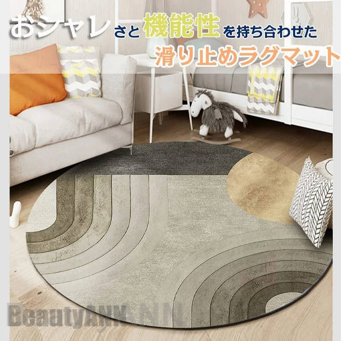 カーペット 円型 滑り止め 綿麻底部 肌に優しい ラグマット ふんわり感 防音 北欧風 消臭抗菌 洗・・・