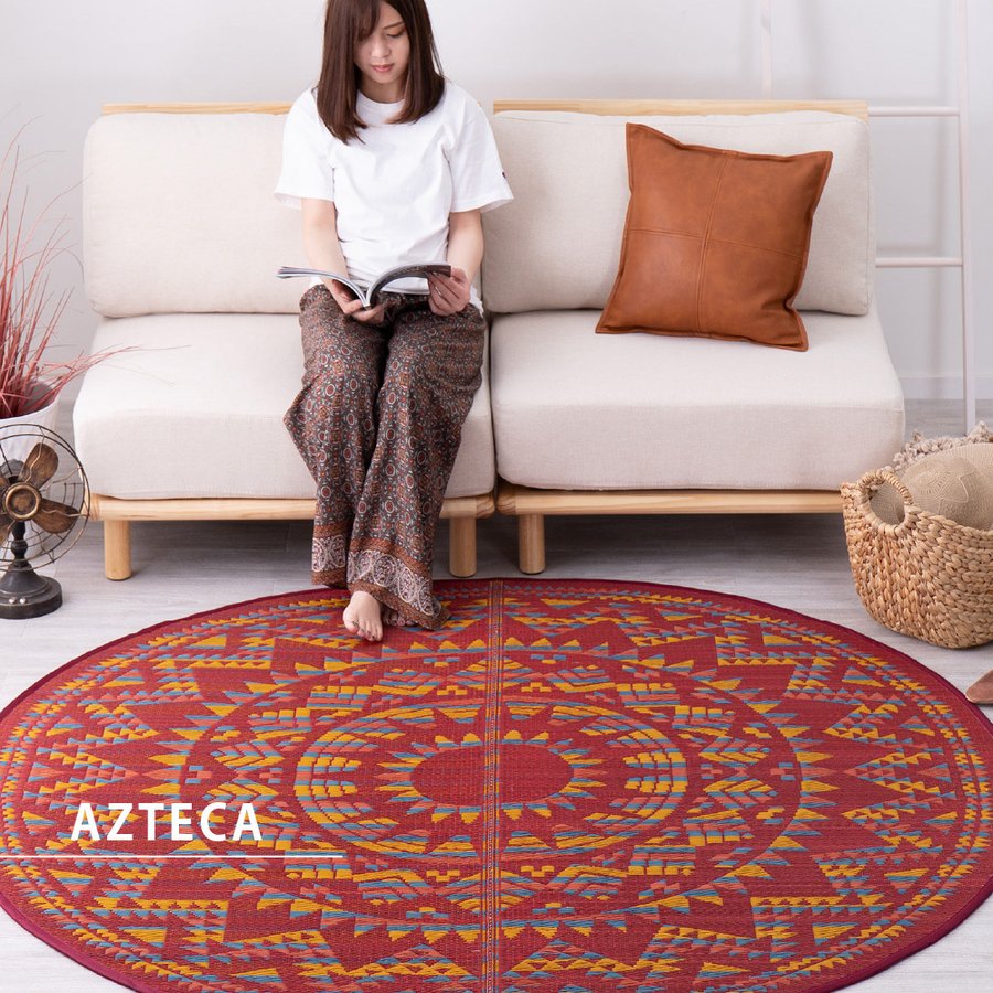 い草ラグ アステカ アズテック柄 い草 天然素材 夏ラグ 夏用 幾何学模様 メキシコ 円形180cm・・・
