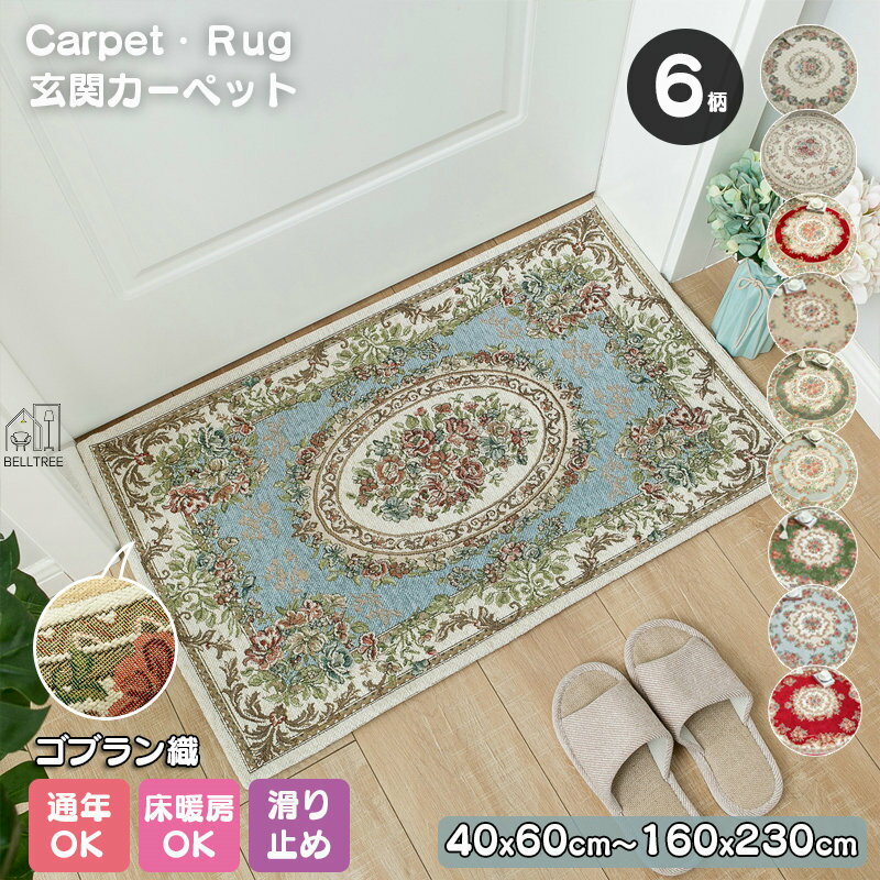 ラグ ゴブラン織 カーペット 大判 オリエンタル柄 ゴブラン織り 花柄 おしゃれ 滑り止め付き 円形・・・