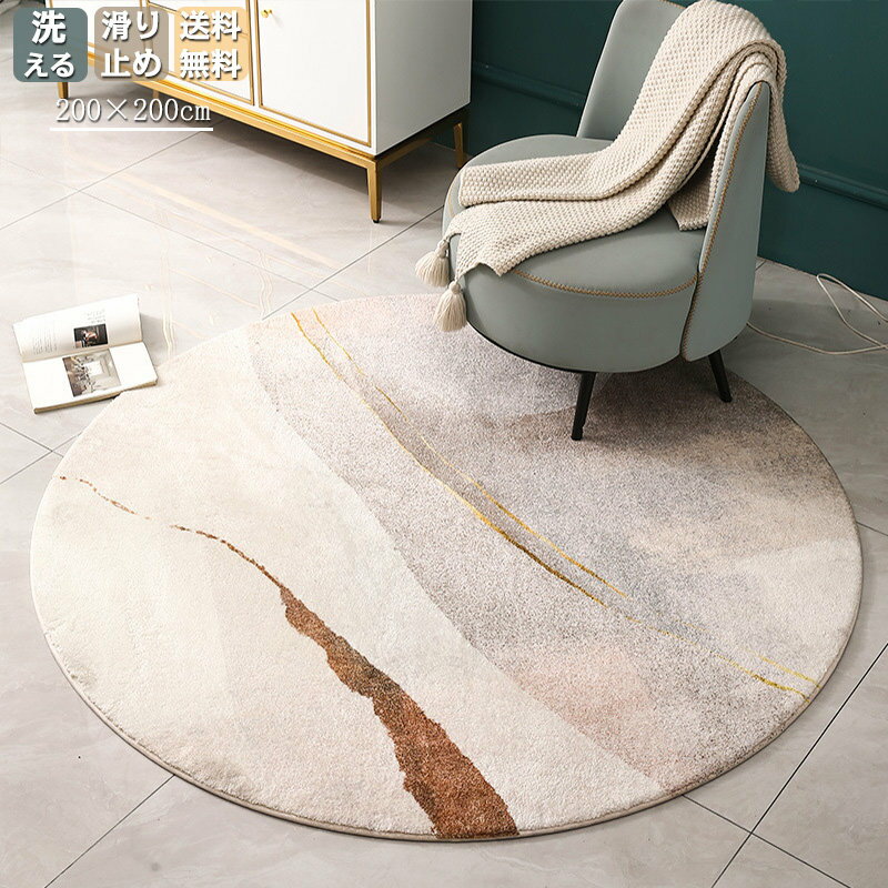 カーペット 掃除楽 サークル 直径200 ズレ防止 かわいい お手入れ簡単 韓国風 水洗いOK 年中使える 洋風 洋室 玄関 絨毯 新生活 オシャレ 四角 じゅうたん デザイン 小さめ 1.5畳 2畳