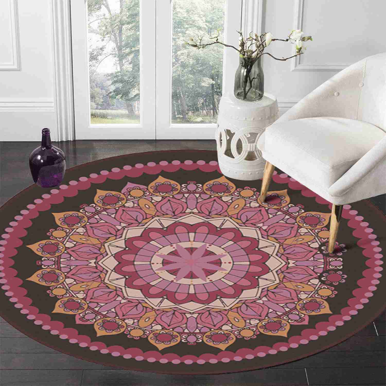 おしゃれで可愛い円形ラグマット 洗濯可能でお手入れ簡単 インテリアに馴染む和風モダンデザインで一年中快適に使用可能