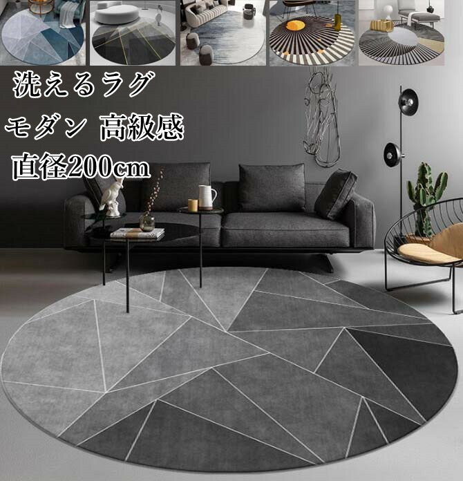 【送料無料】円形ラグ 直径200cm 高級感 北欧 カーペット ラグマット 洗えるラグ 幾何学 オー・・・