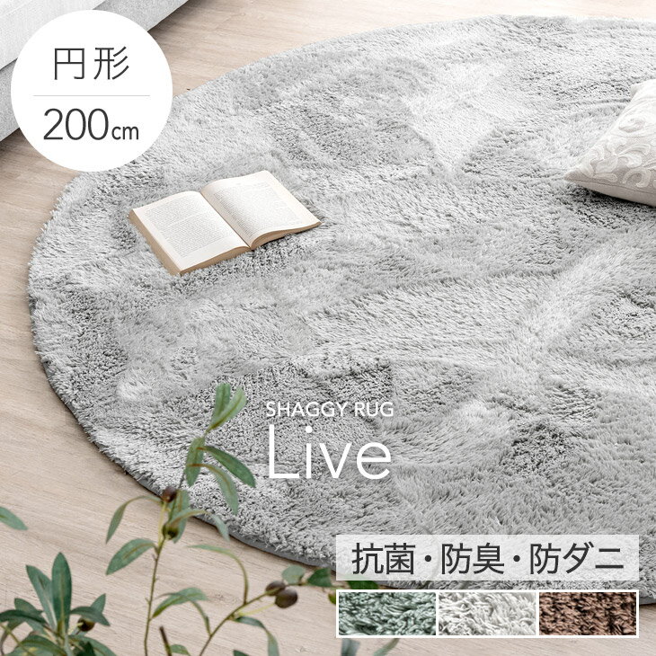 お手入れ簡単毛足25mm 洗える シャギーラグ 200cm 円形 抗菌 防臭 防ダニ 低ホル 防音 滑り止め ホットカーペット 床暖房 対応 オールシーズン マット ラグ カーペット 絨毯 おしゃれ