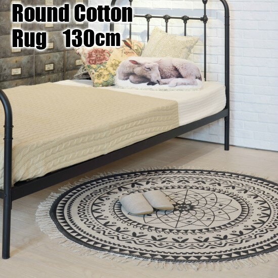 【送料無料】 インド製 ラウンド コットンラグ 130×130cm ラグマット 130×130 丸型 円形 ラグ マット インドコットン 綿 インド製 デザイン 柄 お洒落 レトロ