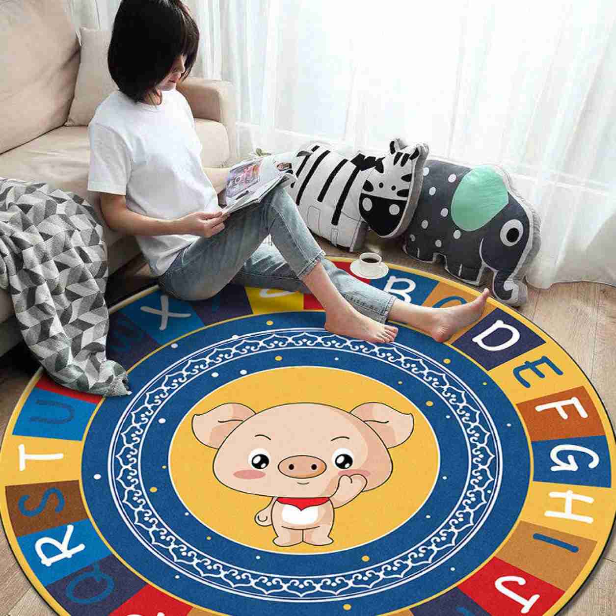 リビングや寝室 子供部屋に最適な防菌防カビ仕様で手入れ簡単 オールシーズン使える丸型ウォッシャブルラッグマット