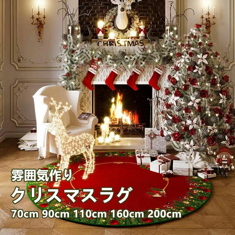 クリスマス ラグ マット カーペット スカート 飾り 70cm 110cm 200cm 大判 多サイズ ベルベット生地 滑り止め ホリデー 円型 丸い 送料無料