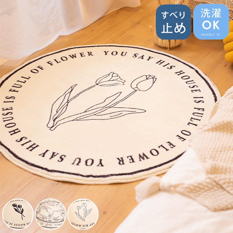 ラグ マット カーペット 洗える 丸型 ラウンド 滑り止め 北欧 かわいい シンプル 床暖房対応 遮音 防ダニ 抗菌 防臭 丸洗い オールシーズン