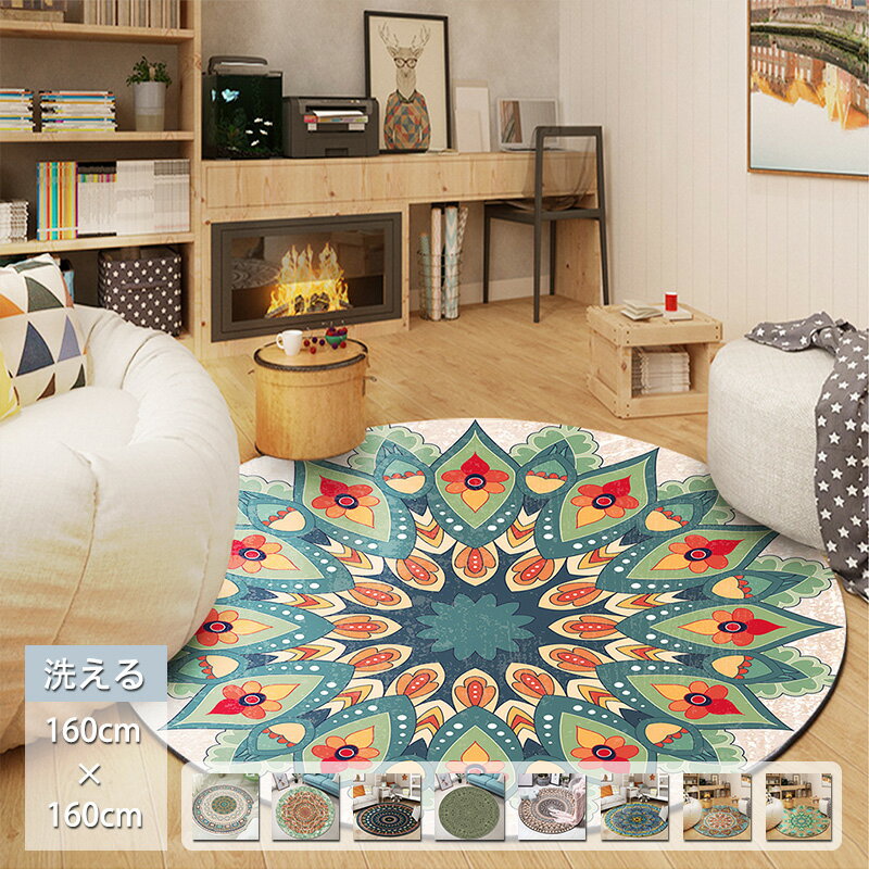 ラグ カーペット 洗える 円形 直径160cm 滑り止め おしゃれ 北欧 ラグマット リビング エスニック風