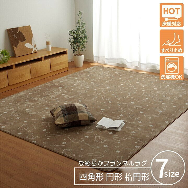 ラグ カーペット 正方形 長方形 長方形大 円形 楕円形 7サイズ 洗える アニマル柄 ネコ柄 キャット柄 ホットカーペット対応 抗菌 防臭加工 フランネル 軽量 裏不織布