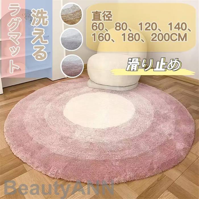 8カラー/6サイズ ラグ 円形 洗える ラグ 円形ラグ 直径200cm 丸型 ラグマット 滑り止め付 西海岸 絨毯 マット 北欧 カーペット リビング 春夏用 可愛い かわいい 撮影背景 脱衣所