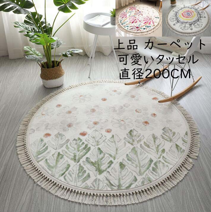 【送料無料】カーペット 花柄 円形ラグ 直径200CM タッセル付き 優しい肌触り ラグマット 滑り・・・