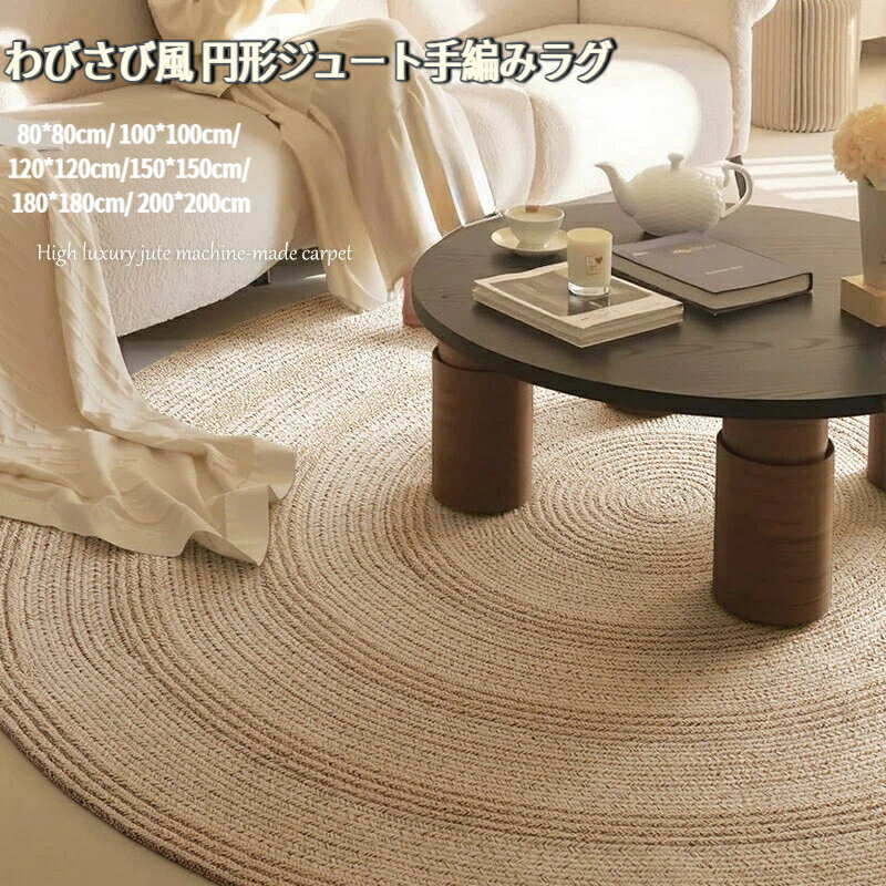 わびさび風 円形ジュート純手編みラグ多サイズ 大面積家庭用 リビング.ベッドルーム . バルコニー ・・・